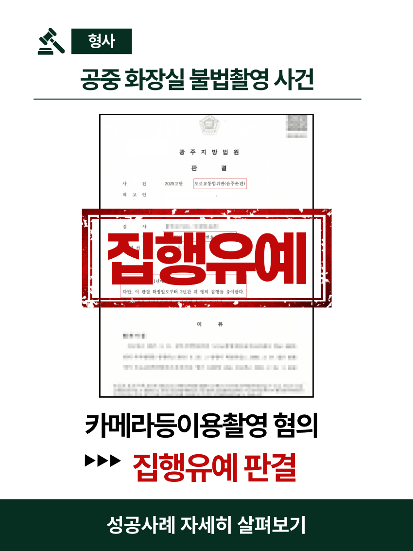 본 사안에서 피고인의 행위는 엄중한 처벌을 받는 상황이었지만 법무법인 태창은 의뢰인의 이익을 위해 피해자와 합의를 권고하고, 피고인이 자신의 행위에 대하여 진심으로 반성하고 있음을 재판부에 설득하여 피고인이 사회에서 일상적인 생활을 할 수 있도록 실형이 아닌 집행유예의 판결을 받아낼 수 있었습니다.